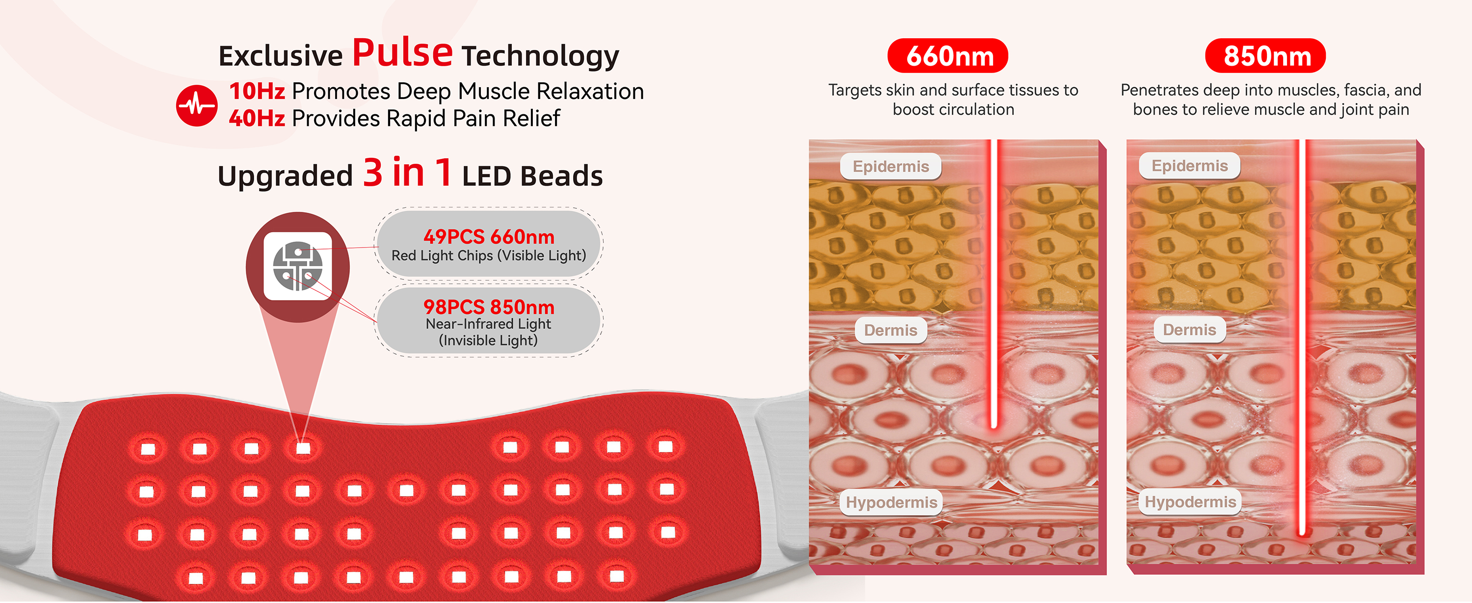 - 🍃【Safely Targeted Relief】Our red light neck therapy’s honeycomb shield holds 49 upgraded LEDs (each LED bead with one soothing 630nm red light and two 850nm infrared light) to deeply warm and relax neck muscles. The even LED layout prevents hot spots, ensuring a gentle heat that doesn’t burn or irritate your skin. Unlike traditional electric massagers that rely on mechanical stimulation, our photon therapy device uses dual wave to gently and effectively relieve pain. Enjoy relaxing infrared light therapy that shields as it soothes.